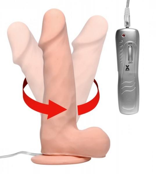 Get the party started with Disco Donnie! This 7 inches dick has a full range of motion, with a unique spinning feature and intense vibration! The soft, outer skin is realistic and supple, with a firm core that will deliver thrilling sensations. Donnie features 10 rhythmic modes of movement and vibration, controlled by a simple remote. The firm suction cup base and wired remote control makes getting off hassle free, so your mind is free to focus only on your pleasure. Measurements 9 inches in total length, 7 inches insertable. Materials Thermoplastic Rubber TPR dildo, ABS plastic power control. Color Beige. Please note vibrating dildo requires 3 AAA batteries, not included.