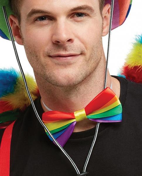 Rainbow Bow Tie, multi-colored, elasticated for a one size fits most. From Smiffys.