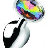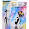 Adorn your derriere with this Rainbow Prism Gem butt plug! The rainbow gem adds dazzling lustful energy to your booty, while the small size and satisfying weight qualify this brilliant butt plug as the main event for the night or as a mild warm up for those more experienced with anal play. Made with nickel free aluminum alloy for a super smooth, non porous, body safe experience! Compatible with water and silicone based lubes so you can use any kind of lubricant for a comfortable anal session. The satisfying weight and density are sure to please anal players of every lover. Excellent for temperature play – heat it up or chill it down for a variety of different backdoor sensations! Clean before and after use with warm water and mild antibacterial soap or toy cleaner. Insert and dazzle your lover with this sensual gem and get their engines going! Measurements: Total length 2.8 inches, 1 inch widest insertable width Materials: Nickel free aluminum alloy Color: Rainbow