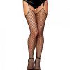 Raw Edge Top Diamond Net Stockings Black O/s