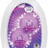Please and tease with these sexy vibrating nipple pasties! These flirty pasties adhere comfortably to your nipples. The mini vibes add extra zing and rest on the nipple perfectly. Simple lay back, slip the Razzles over your nipples and flip the switch! While the vibrations will last only as long as the batteries last, with the ON-OFF switch, you can save your batteries easily. Measurements 2.5 inches in diameter. Materials Thermoplastic Rubber TPR pads, ABS plastic bullet. Color Purple. Note phthalate free, batteries included.