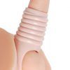 This erection enhancing sleeve is extra fat, with big ridges for incredible girth and plenty of sensation! The outer texture features large rolls, for intense stimulation with every thrust. The ball strap will help keep it in place, and the open ended design lets you feel more of your partner as you drive them wild with your new fatter dick! The walls are extra thick for a measurable girth increase, with separate holes for the cock and balls for comfort, stimulation, and security. The phthalate free material is body safe, easily cleaned, and has enough firmness and slickness for easy insertion while remaining flexible. Please note shown on dildo, not included.