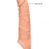 Realrock Penis Sleeve 8 inches Flesh Light Skin Tone from Shots Toys. Be the bigger, better deal. The super life like shapes, textures, and colors of this dong truly look and feel like the real thing! Made from Phthalate free Skin Thermoplastic Elastomers TPE, this squishy material mimics the softness of real skin and is completely body safe. This beautifully crafted dildo is made by injection molding in order to eliminate smell and defects and at the same time increase its thermo stability and durability. Shaft comes with a strap for balls. Plus it helps keep the sleeve in place.