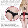 Adam and Eve Red Ribbon Harness one size fits most. Waist up to 55 inches. Made using Polyester, Rubber, Polyurethane PU. Color Black harness, red ribbon. Please note harness only, no attachment.