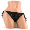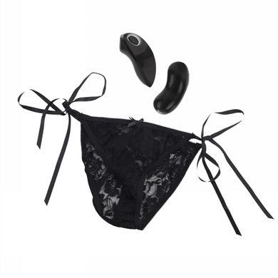Little Black Panty. The perfect accessory for your little black dress. Stretch to fit sexy lace thong/panty with adjustable satin ties and a secret pocket for secure bullet placement. Discreet and powerful remote control body forming curved bullet. 10 incredible functions of vibration, pulsation, and escalation. Customize your fit with satin ties. Remote control has a range of 19.5 feet.