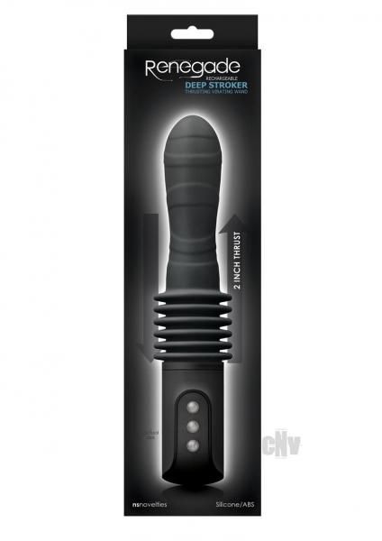 Long strokes for happy blokes, The Renegade Deep Stroker features an increased range of motion for profound thrusting and intense orgasmic pleasure. Powerful vibrations add to the explosive pleasures delivered by Renegade`s Deep Stroker. This powerful and rechargeable toy is made of body safe silicone and is suitable for use with all lubricants.