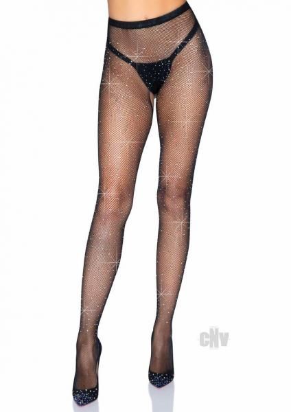 Rhinestone fishnet crotchless tights with cheeky open back.