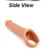 Color Beige. Type: P.P.E. (Prosthetic Penis Enhancer) Material: Silicone Roll the sleeve one third of the way down. Apply lubricant to the inside of the Ride On and your penis. Squeeze out the air. Place your penis in the opening and gradually release the pressure. Roll down the Ride On to the base. Pull the scrotum through the hole. Pull to one side and push through testicle. Repeat with the other. Have fun! Outer: 6-¼”x 1-¾”Inner: 4″x 1″2.5 inch solid tip