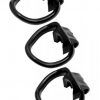 Trap your slaves penis so that he can not touch it or achieve an erection! This innovative chastity device includes an internal locking system so that all you need are the cage, the ring, and the keys! The sizes of rings allow you to find the perfect fit to go around your submissives shaft and scrotum, or start out big and work your way down to the smallest to watch him squirm! The shape of the rings makes them sit comfortably against the body. A cum through hole at the tip ensures that he can wear this device for long periods of time, allowing him to use the bathroom while wearing it. The plastic locking system is great for travel and avoiding embarrassing moments going through security!