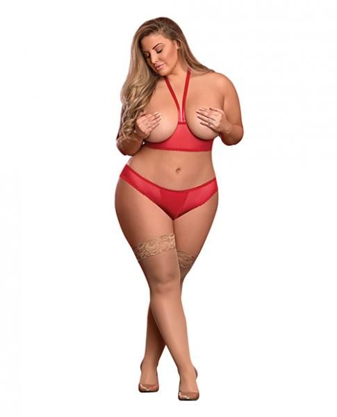 Risqué Business Cupless Bra & Crotchless Panty Red Qn