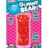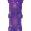 Realistically shaped mini gummy bear vibrator. Contoured grooves provide additional stimulation. Realistic, gummy soft Thermoplastic Elastomers TPE. Ultra powered motor packs a sweet punch. Discreetly sized for travel. Splashproof design. Available in Blue, Pink, Purple and Red. Dimensions total length 2.5 inches. Carded packaging measures 3.5 inches by 6 inches.
