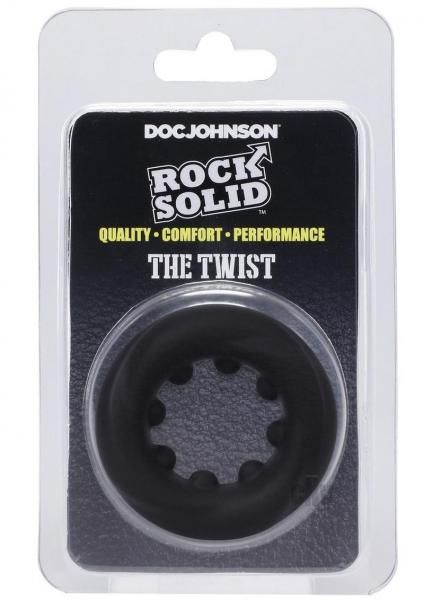 Soft and stretchy, with internal nubs for added stimulation, The Twist is an ideal thick silicone cock ring. Its stretchiness allows it to be worn over the balls and shaft to delay ejaculations and prolong erections. Phthlate-Free and Body-Safe.