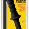 Curve Toys Rooster Jackhammer XL Black Double Ended Anal Probe. Perfectly sized for intense thrusting. Double sided thruster probe. Use as a rammer or built in handle doubles as a smooth dong. Rounded tips for easy insertion. Pliable yet firm with flared hilt for safety. Materials Enhanced PVC, Latex free, ultra premium. Dimensions 11.5 inches by 1.87 inches, 6.5 inches insertion length. Care instructions: clean with soap and warm water or toy cleaner before and after use. Use with any water based lubricant or silicone based lubricant.