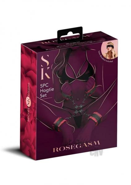 Rosegasm 5 Piece Hog Tie Set with a Blindfold from X-Gen Products. 5 Piece Hogtie Set included a one size fits most Satin Blindfold.