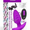 Add something more exciting to your toy bag with this rotating, vibrating butt plug! The silky smooth silicone covers the plug and feels great when slipped inside your derriere. Use some water-based lube and enjoy the ribbed texture on the sides of the shaft. The tapered tip makes it easy to get inside and the slim, textured base keeps it safely in place while also fitting comfortably between your cheeks for long-term wear. Enjoy 3 speeds and 7 patterns of powerful vibrations and scintillating rotations! This stimulating duo of sensations can be controlled from up to 26 feet away via the battery-operated remote! Use it on yourself or give your partner the control to turn you on anywhere at any time while you wear it! The silicone is phthalate-free, body-safe, and phthalate-free. Use only with water-based lubricants for best results. First, turn on both the toy and the remote so they pair up. Then, grab the lube and rub it on the tip and shaft of the plug. Get yourself in position and slowly slide it inside. Once it pops into your derriere, turn on the vibrations and rotations! Enjoy the feeling as it rubs against you from inside and buzzes your most sensitive zones. Have some fun with it and combine that sensation with stroking, touching, and playing with yourself! Want to take a walk on the wild side? Put your clothes back on, hand the remote to your partner, and let them turn you on randomly to see if you can handle the sexy sensations in public! Measurements : Overall length: 3.9 inches. Insertable length: 3.1 inches. Widest insertable diameter: 1.5 inches. Materials : Silicone, ABS plastic Color : Purple Note : Use only with water-based lubricants for best results. Remote distance up to 26 feet, requires a CR2032 battery (included).