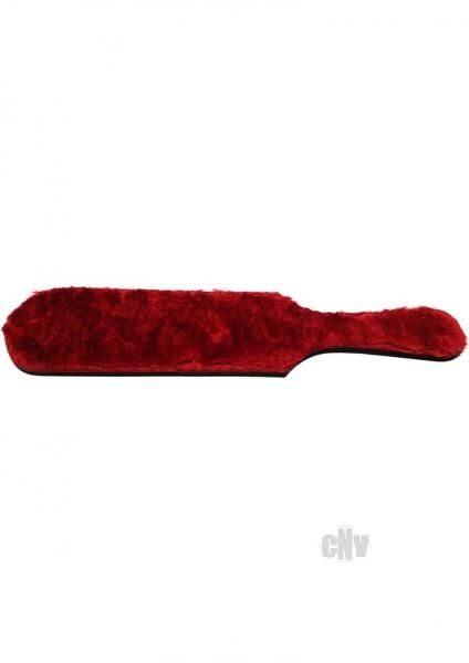 One side fur and the other plain flat leather side. Start with the fur side and then surprise them with the harder flat leather side. They will always be guessing which side is next. The fur side can also be used to gently stroke the red marks. Features: length 13.5 inches, width 3 inches. Handle made with a lightweight piece of aluminum.