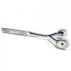 A medical type device used for sensory stimulation, pain/pleasure play, or teasing. Contains two spinning pinwheel heads, one on each prong.