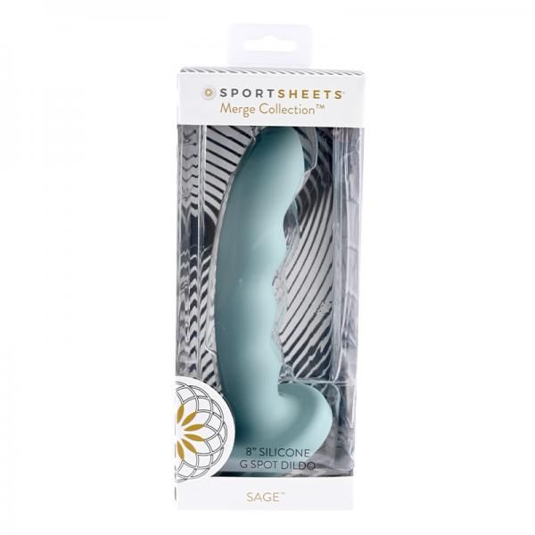 Sage 8 inches Silicone Dildo Green from Sportsheets. The Sage 8 inches, solid Silicone dildo from the Sportsheets Merge Collection is the creation of pleasure and versatility combined. With its flared base, Sage can be used with O-Ring and underwear style harnesses and used externally or internally for partner and solo play. The ample curvature, nonrealistic pleasure bump shaft and tapered tip encourages G-Spot and P-Spot stimulation and the soft Silicone creates an ultra smooth sensation making it feel like a dream. Merge with pleasure. How to use: apply water based lubricant to your toy to enhance experience or pair with 1.75 inches O-Ring for strap on play. Compatible with Dildo and Harness Silicone Cushion. Features: flared base can be used with O-Ring and underwear style harnesses. Ample curvature. Nonrealistic pleasure bump shaft. Tapered tip encourages G-Spot and P-Spot stimulation. Made of soft Silicone. Limited Lifetime Warranty. Product dimensions: insertable length 8 inches. Girth 4.75 inches. Width 1.5 inches. Base diameter 3.25 inches. Video. 2021.