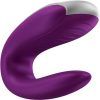 Satisfyer Double Fun Partner Vibrator Violet powerfully stimulates both partners during sex. The U-shape is fitted both inside and outside, ensuring a seductive feeling for the clitoris, G-Spot and penis. App enabled, this high tech pleasure product is enhanced with remote control play and more! Compatible with the free Satisfyer App available on iOS and Android. 2 powerful motors transmit intense vibration rhythms throughout the entire toy. Ideally suited for couples. Features: 15 year guarantee. 2 super strong power motors. With wireless remote control for partner use. Body friendly phthalate free materials Silicone. Waterproof IPX7. Can also be used without the app. Preset programmes can be edited. What can the Satisfyer Double Fun couples vibrator do?The Satisfyer Double Fun will enrich your love life with powerful vibrations that stimulate both of you sensually. The classic U-shape couples vibrator is worn during lovemaking and stimulates the entire penis as well as the G-spot with its insertable shaft. The second motor is hidden at the other end of the couples vibrator and stimulates the clitoris at the same time. The couples vibrator is made of body friendly silicone, which feels especially soft on the skin. Your fun together can also continue in the shower or bathtub: Thanks to its waterproof IPX7 finish, the Satisfyer Double Fun is the ideal companion for wet and wild pleasure. If your device ever runs out of steam, you can recharge the integrated batteries with the included USB charging cable.