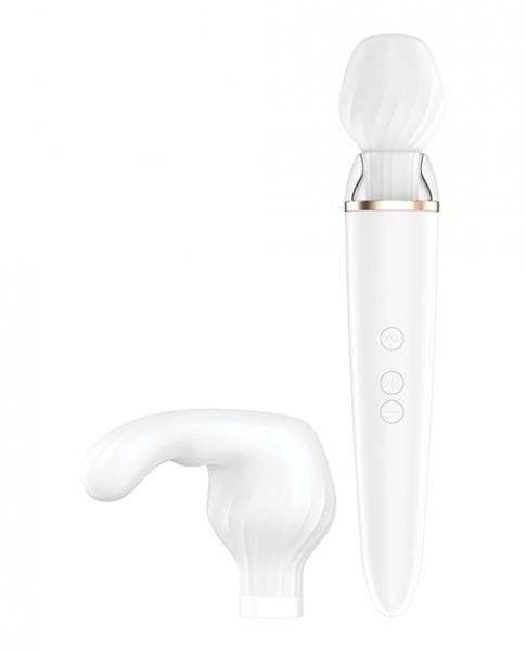 Enjoy deep relaxation with the Satisfyer Double Wand-er: The elegant white massager comes with 2 attachments and is unbelievably versatile. It includes an interchangeable attachment, which turns the classic massager into a G-spot of A-spot vibrator. The impressive XXL size makes it easy to use and easily reaches all the right spots and curves that long for relaxation and stimulation. The surface of the Satisfyer Double Wand-er is made of body-friendly, supple silicone, which bewitches your skin with a delicate feel. Because the massager is waterproof (IPX7), you can also use it in wet areas like the shower or bathtub – and clean it easily with warm water and mild soap. The integrated batteries can be easily recharged with the included USB charging cable.
