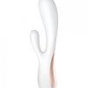 Satisfyer Mono Flex White Rabbit style vibrator 2 powerful motors, seamless silicone finish, and simultaneous stimulation of the G-spot and clitoris make the Mono Flex the highlight of every collection. It also has a sophisticated form and app control. Compatible with the free Satisfyer App available on iOS and Android. 2 powerful motors transmit intense vibration rhythms throughout the entire toy. Silicone flex technology makes the shaft soft, smooth and extremely flexible. 15 years guarantee. Clitoris and G-spot stimulation. 2 independently controlled motors. Body friendly silicone. Waterproof IPX7. Can also be used without the app. Preset programs can be edited App offers an unending range of programs. Whisper mode 50 vibration combinations. Magnetic USB charging cable included Rechargeable Lithium ion battery. Silicone Flex Technology. Easy to clean.