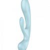 Three`s a charm for sure with the remarkable Satisfyer Triple Oh. This silicone marvel combines double stimulation of your most sensitive hot spots with sensual full-body massages, and each function can be controlled separately. With three powerful motors, this toy delivers maximum power to enhance your pleasure. 2 in 1: Massager and rabbit vibrator in one. Simultaneous stimulation of your clitoris and G-spot. Perfect for a full body massage. 15-year guarantee, 2 in 1: Massager and rabbit vibrator, Clitoral and G-spot stimulation, Stimulating full body massage, Body-friendly silicone, 3 separately controllable motors, Waterproof (IPX7), Whisper mode, Lithium-ion battery, Easy to clean, USB magnetic charging cable included