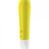 Satisfyer Ultra Power Bullet Vibrator 1 Perfect Twist Yellow. The Satisfyer Ultra Power Bullet 1 satisfies you and your hot spots with a rounded, broad surfaced tip and particularly powerful vibrations. This vibrator also boasts intuitive controls and body friendly silicone. Powerful vibration. The Satisfyer Ultra Power Bullet 1 satisfies you and your hot spots with a rounded, broad surfaced tip and particularly powerful vibrations. This vibrator also boasts intuitive controls and body friendly silicone. Powerful vibration patterns provide intense clitoral stimulation. Thanks to its waterproof rated IPX7 finish, this toy can be used safely in water and is easy to clean. Made from super soft, body friendly, medical grade silicone that is smooth to the touch and extremely hygienic. 15 year guarantee. Vibrator for clitoral stimulation through powerful vibrations. 12 vibration programs. Body safe phthalate free, friendly Silicone. Waterproof IPX7 vibrations. Whisper mode. Rechargeable Lithium ion battery. Magnetic USB charging cable included. Easy to clean. Satisfyer Ultra Power Bullet mini vibrators will entice you with their extremely powerful motor, very small size and diverse applications for singles and couples the Ultra Power Bullet 1 is no exception. With its small, firm body made of soft silicone, you can use it on all your erogenous zones. It is especially great when it comes to clitoral stimulation. With its round tip, it surrounds your hot spots over a large area, while its voluminous shape fits comfortably in your hand. 12 seductive programs, consisting of 5 speeds and 7 vibration patterns, will really get you going. Your partner can also have fun because you can easily integrate the bullet into your lovemaking due to its small size. Mini vibrator for on the go. Intuitive one touch operation make this bullet vibrator the ideal device for beginners. At 4.13 inches, it also fits in smaller handbags and can accompany you on trips or on the go. Would you like to dive deep with the Ultra Power Bullet 1? No problem! After your adventures, you can easily clean it with lukewarm water, mild soap and a sexual wellness device cleaner and recharge it with the included USB charging cable.