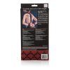 Luxurious, breathable ball gag with universal cuffs and adjustable restraint strap. Soft and plushy on one side, with designer fabric on the other. Cuffs are detachable for independent use. Universal clasps and O-rings with swivel design. Non tarnishing, nickel free. Polyester fabric, Velcro, Polyethylene PE ball gag, Polyproplyene PP straps, Nickel free Iron rings, Nickel free Alloy clasps, Polyoxymethylene POM buckle. Gag collar adjusts up to 26 inches. Cuffs adjust up to 14 inches.