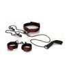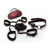 Stretch to fit blindfold. Totally adjustable cuffs for use on wrists or ankles. Luxurious, dual sided collar with universal buckle closure. Detachable leash with heavy duty metal chain. Set of 2 detachable, fully adjustable multi-use clamps with soft, comfortable pads. Non-tarnishing, nickel free. Universal clasps and D-rings with swivel design. Safe and pure for body and pleasure. Made using the following materials Polyester fabric, Polyproylene PP leash, Nickel free Iron chains, clamps, D-rings, Nickel free Alloy clasps, clips. Phthalate free PVC pads. Collar is fully adjustable up to 10.5 inches. Cuffs adjust up to 10 inches leash. 2.25 inches by 1 inch each clamp.
