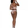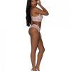 From the Exposed by Magic Silk collection, this style includes: a lace bralette featuring, adjustable shoulder straps with blush tone sliders, a strappy back design with with a blush toned o-ring, swan hook closure in the back, and a matching lace short featuring a ribbon-like strap. Soft floral lace is paired with ribbon-like straps in a wash of creamy blush. 90% Nylon, 10% Spandex. Hand Wash Cold. No Bleach. Dry Flat. L/XL – Size 12-18 . Waist : 36in.-42in.