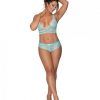 Seabreeze Strappy Back Cami and Shorts Set Turquoise L/XL from Magic Silk Lingerie. From the Exposed by Magic Silk collection, this style includes a lace bralette featuring, adjustable shoulder straps with turquoise tone sliders, a strappy back design with with a turquoise toned o-ring, swan hook closure in the back, and a matching lace short featuring a ribbon like strap. Soft floral lace is paired with ribbon like straps in a wash of pale turquoise. Fabric content 90% Nylon, 10% Spandex. Care information: hand wash, cold water. No bleach. Dry flat. L/XL – sizes large to extra large. 12 -18. Waist 36 inches to 42 inches. Categories: Lingerie, Clothing, Bra Sets, Women’s Underwear, Naughty Role Play. 2022.