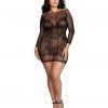 Seamless Fishnet and Lace Versatile Chemise Black One Size Queen from Dreamgirl Lingerie. Seamless fishnet and lace chemise. Bateau neckline with plunging lace detail. Long sleeves. Low open back. Thong panties not included. Dreamgirl Style No. 12246XBK. Ladies sizes 16 to 22. Bust D/DD, weight 180 to 260 pounds. 40 inches to 50 inches bust. 36 inches to 44 inches waist. 42 inches to 52 inches hips.