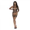 From the Seamless collection by Magic Silk, this style includes: A halter style merrywidow featuring a front chest cutout, and gartered thigh cuffs. This stretchy style fits any body type and is extremely flattering! Super stretchy and conforming seamless black fabric.