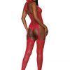 Seamless Heart Fishnet Bodystocking Lipstick Red O/s