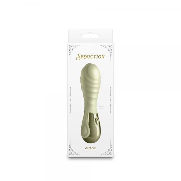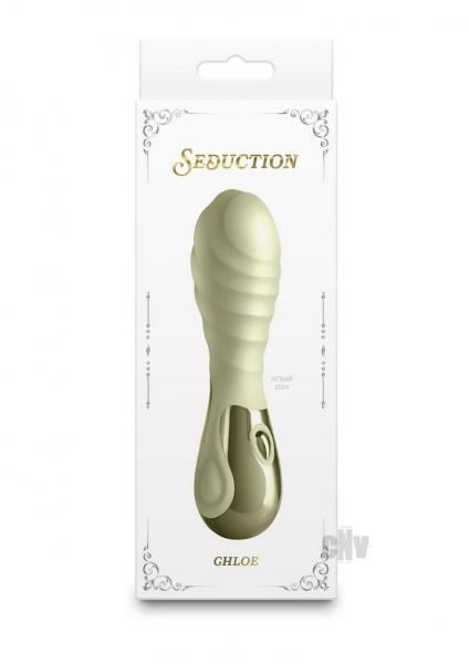 Chloe by Seduction An irresistible compact vibe featuring a rippled texture to deliver euphoric sensations to all erotic areas. Chloe is made from silky smooth, body-safe silicone and is accented with a metallic handle and power button. Silicone has a beautiful metallic sheen. Travel-friendly. Rechargeable. Water Resistant. Suitable with all lubricants, including silicone. 3 speeds / 7 functions.