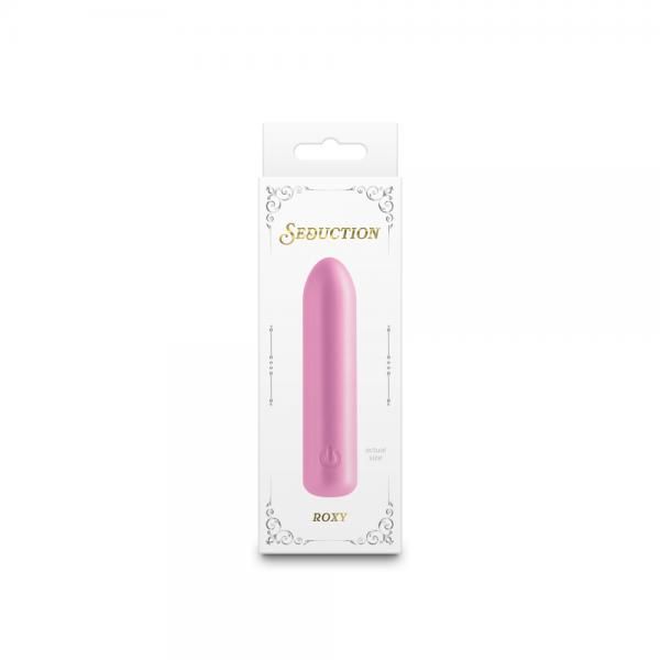 Roxy by Seduction A petite and charming mini vibe that delivers mind-blowing vibrations while remaining discreet. Roxy is made of flexible, body-safe silicone and is travel-friendly. Silicone has a beautiful metallic sheen. Rechargeable. Water Resistant. Suitable with all lubricants, including silicone. 3 speeds / 7 functions.