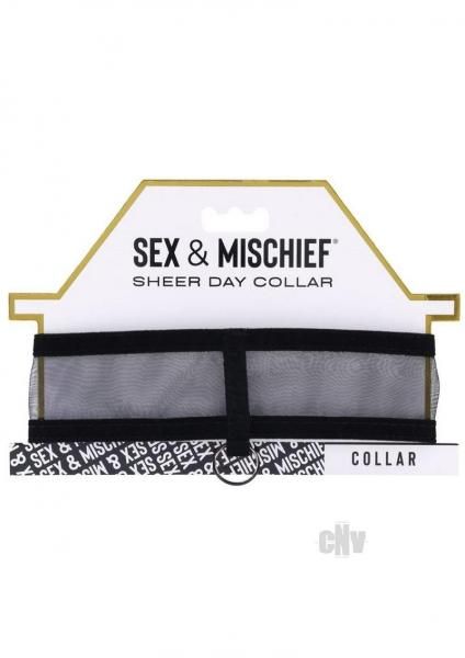 Sex and Mischief Sheer Day Collar from Sportsheets. Add a touch of sensuality and allure to your outfit with the Sheer Day Collar! This stunning sheer collar features a black and gold collar ring and is delicately finished off with a luxurious velvet ribbon. The unique combination of materials makes the Sheer Day Collar a one of a kind piece that will elevate any ensemble, in and outside of the bedroom. Indulge in the Sheer Day Collar and experience the ultimate in submission and glamour! Features: designed for discreet wear with lobster claw closure. Smooth sheer mesh allows for comfortable all day wear. Adjustable length to fit necks 13.5 inches to 16.75 inches. Designed for discreet wear with lobster claw closure. Smooth sheer mesh allows for comfortable all day wear.