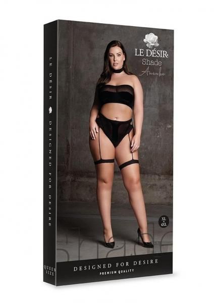 Dare to be different in this amazing three-piece. Ananke contains a perfectly fitting bottom with garters, a semi-transparent bandeau and a choker to top it off. All the materials are premium and stretchable, making this three- piece a perfect fit for size XL up till XXXXL. The design will make you feel sexy, strong and seductive.