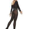 Sheer Long Sleeves Bodystocking Black O/S