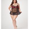 Sheer Mesh & Lace Demi Cup Babydoll & Thong Lavender Xl