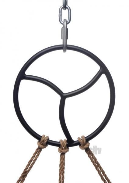 Perfect for rope bondage, including intricate Shibari designs and basic suspension techniques, this sturdy ring allows you to take your scenes to new heights! The attractive design reminds you to always practice Safe, Sane, and Consensual BDSM. The three separate segments also serve as individual attachment points for your rope, chains, and other accessories. Measurements: 8.6 inches in diameter Material: Chrome-plated metal Color: Black Note: Chain and rope not included