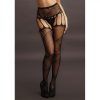 High neck mini dress with lace-pattern border and striped pattern. This dress has some stretch and can be worn from size S to L.