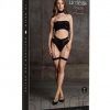 Suspender pantyhose made of soft, stretchy fishnet with striped pattern. Wear under clothing for a timely reveal, or to accessorise a lingerie set to amp up bedtime games. Thong not included.