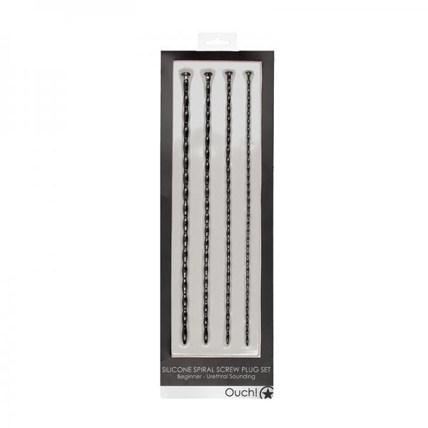 Shots Ouch Beginner Urethral Sounding Silicone Spiral Screw Plug Set – Black