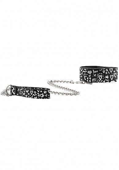 Shots Ouch Love Street Art Fashion Printed Collar W/leash – Black