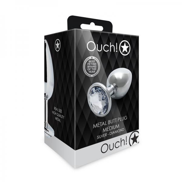 Shots Ouch! Round Gem Butt Plug Medium Silver/diamond