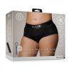 The Vibrating Strap-on Hipster sits high on the hip with an open crotch design and lace details.