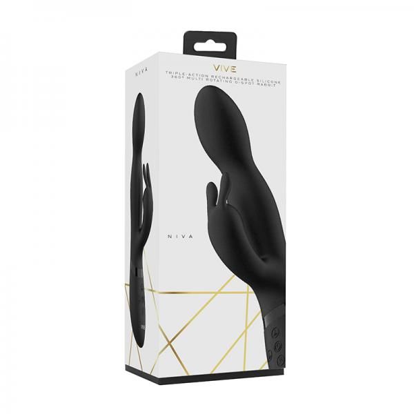 The NIVA rechargeable silicone G-spot rabbit, boasts a 10 function, 360 degree multi-directional rotating, G-spot tip. With a 10 function vibrating G-spot tip and 10 choices of clitoral vibrations, the NIVA will leave you spoiled for choice. The 3 motors will give you over 1,000 possible unique settings to play with. The toy is made from 100% silky smooth, medical-grade silicone, it’s 100% waterproof (ipx7) and extremely quiet at under 60db, which means no one else needs to know what you are up to! It contains a usb magnetic rechargeable lithium-ion battery, that when fully charged with its usb cable, will provide 50 minutes of passionate playtime. Just plug and charge! When you’re getting close to climax, just one-touch of the special function climax button will immediately bring all the motors to full power/speed and, more importantly, bring you to an earth-shattering orgasm.