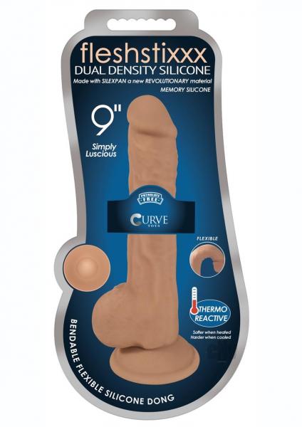 This ultra-premium, dual density dream is the last dildo youll ever need! Made with Curve?s revolutionary Silexpan Silicone formula that molds to your preferred shape, as well as providing the premium feel of dual density dongs. FleshStixx are dependable, satisfying dongs that give you what you need in a low maintenance package so you can focus less on caring for the dildo and more on caring for yourself! The exclusive Silexpan formula is Thermo Reactive ? heat these dongs up to make them softer and easier to mold, then cool them down to harden them in your preferred shape. The phallic head and sculpted veins feel like the real thing, and the lack of balls allows you to enjoy every inch of these Flesh shafts. The strong suction cup base allows you to plop these dildos on any smooth and flat surface, and makes them compatible with most strap on harnesses. Mold a FleshStixx to your dream shape and go for the most satisfying ride of your life! FleshStixx dildos are low maintenance so you can focus on your pleasure ? each dildo is hypoallergenic, latex free, and phthalate free for a body safe experience. These dildos can be boiled for 3 minutes for a quick sterilization and top rack dishwasher safe! FleshStixx dildos are compatible with water based lubricants only, avoid use with silicone based lubes to prolong the life or your dildo. Curve Toys is known for their ultra-realistic bio-skin formula used to create the best dildos and adult toys in the world. They manufacture their adult replica products in the USA with only body-friendly, phthalate-free, and top-grade materials. Their proprietary blend of bio-skin is mixed in-house, making them a leader in sexual health. All products are inspected for superior functionality so that they represent the value, quality, and innovation from the factory to the bedroom. Staffed by experts with over 60 cumulative years in the adult manufacturing, Curve Toys is the perfect combination of passion, creativity and experience; in short, we know pleasure. Made with a patented revolutionary formula for a realistic feel. Measurements: Total length 9.5 inches, insertable length 6.75 inches, width 1.75 inches Materials: Phthalate free silicone Color: Tan