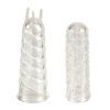 Soft, stretch-to-fit, unscented, textured silicone finger teasers.